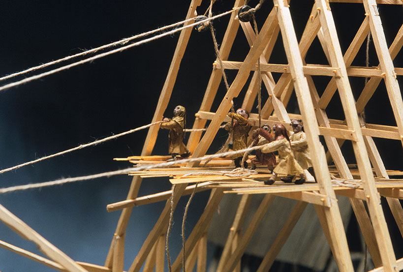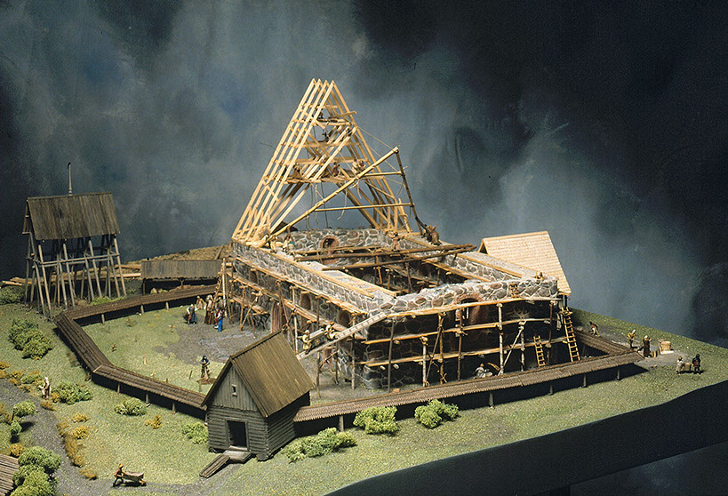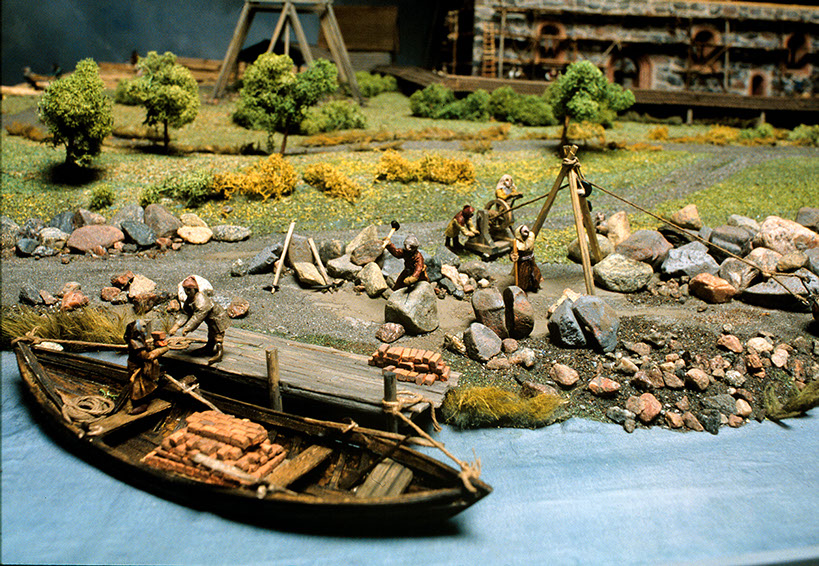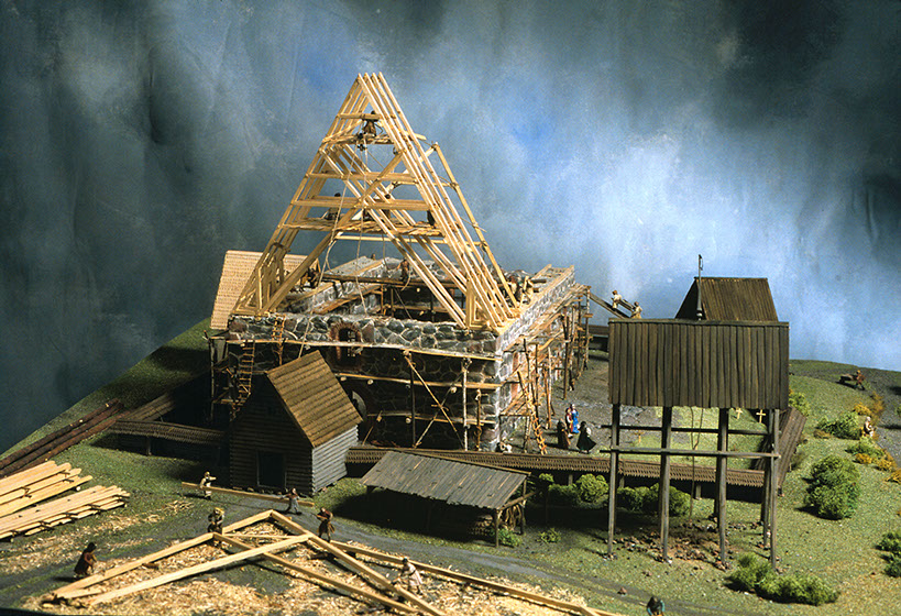 Pienoismalli kertoo Espoon kirkon rakentamisesta 1400-luvun lopulla. Malli havainnollistaa sitä, kuinka Suomen kivikirkot on keskiajalla rakennettu: käytetyistä työmenetelmistä rakennuskivien halkaisusta, laastin teosta, muurien muuraamisesta valutekniikalla, kattoristikoiden nostoon miesvoimin.