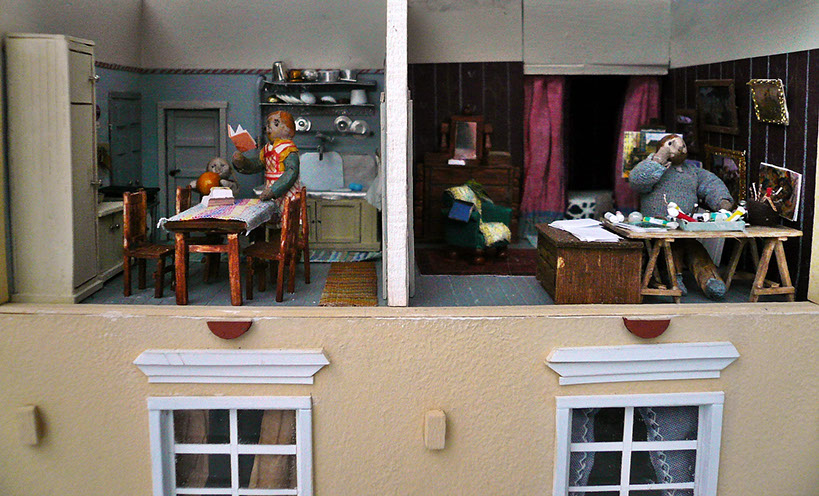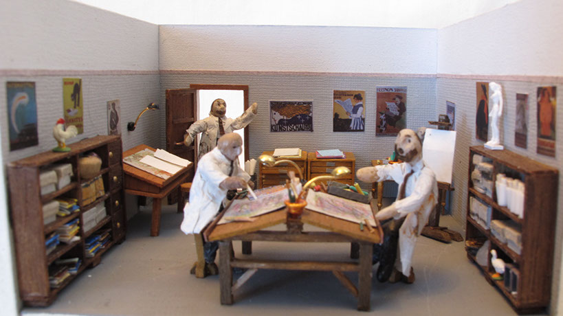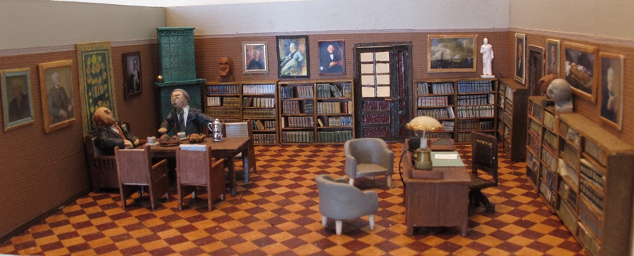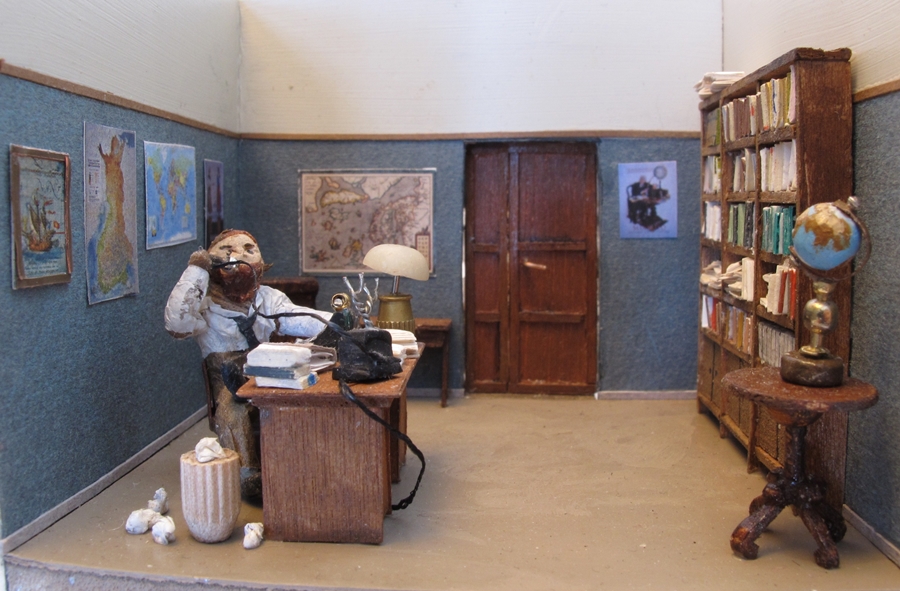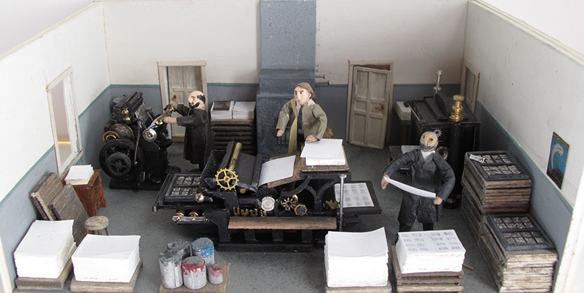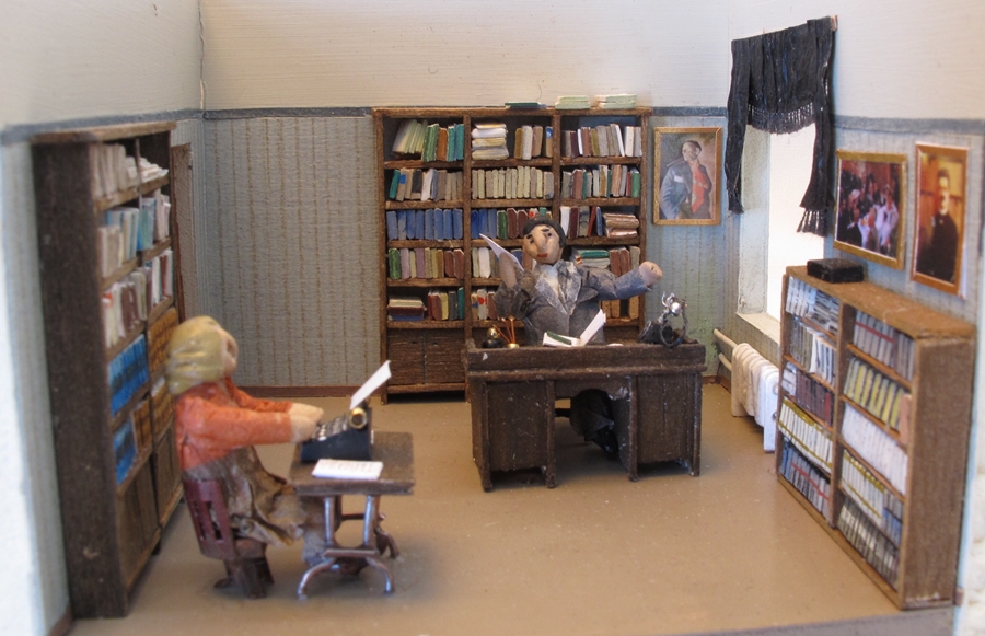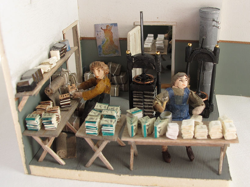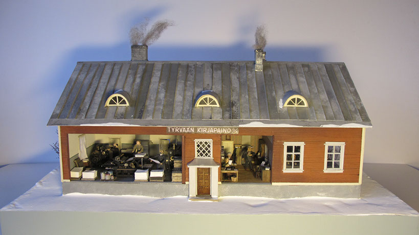 Kuinka kirja syntyy? Siihen vastaa viiden pienoismallin sarja, johon kuuluu kirjailijan talo, kuvittajan kaupunkiasunto, kääntäjän saaristolaismökki, suuri kustannustalo (Otava) ja kirjan lopullinen toteuttaja painotalo, tässä mallina pieni Tyrvään kirjapaino. Mallit ajoittuvat 1920-luvulle ja kokonaisuus on rakennettu Suomen kirjainstituutin Pukstaavi-museoon Sastamalassa.
