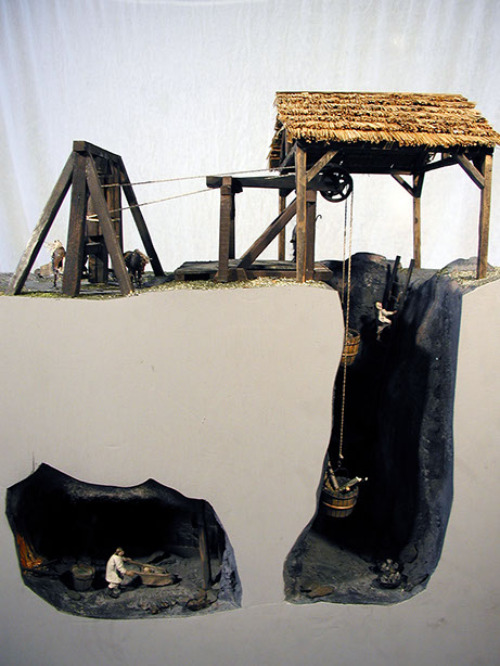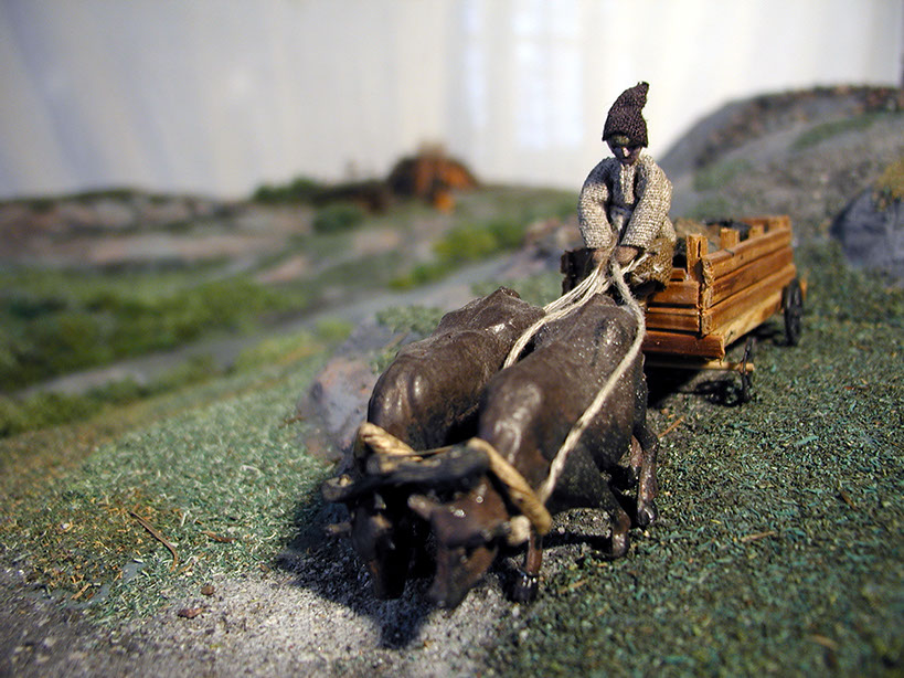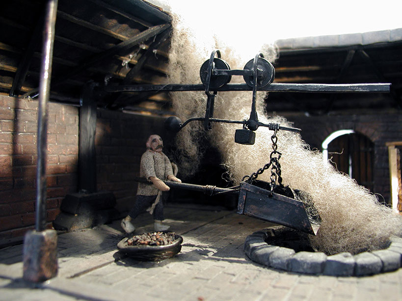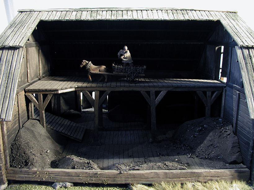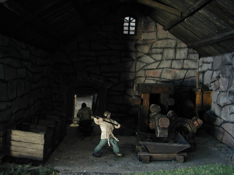 Miten malmista syntyy rautaa? Pienoismalli kertoo vaihe vaiheelta kuinka se tapahtui lähtien malmin louhinnasta, edeten pasutuksen ja murskauksen kautta masuunin hehkuun, sieltä mellotukseen kankivasarapajassa ja edelleen kuljetettavaksi Tukholman rautamarkkinoille. Rakennuksilla on esikuvansa Fiskarsissa tai lähiruukeissa ja mallin koko on yli 6 m2