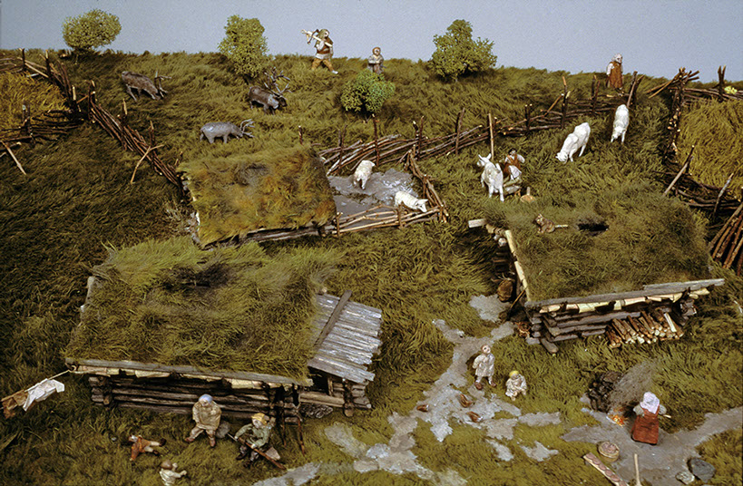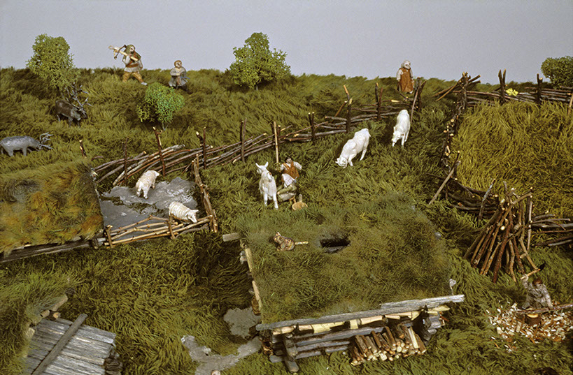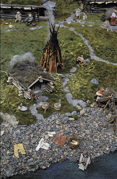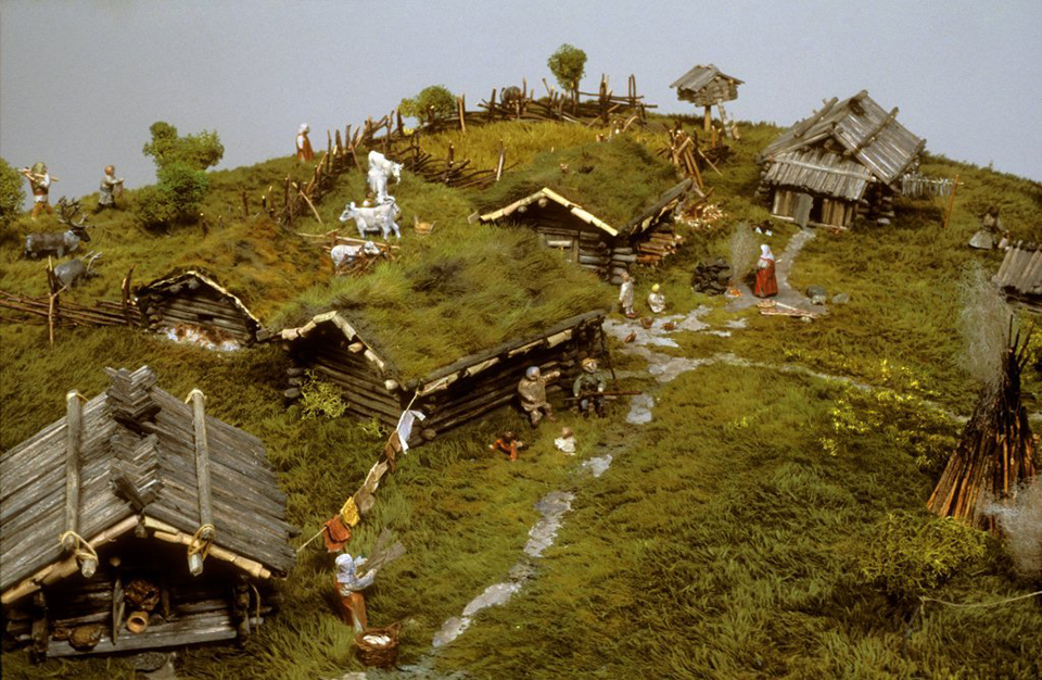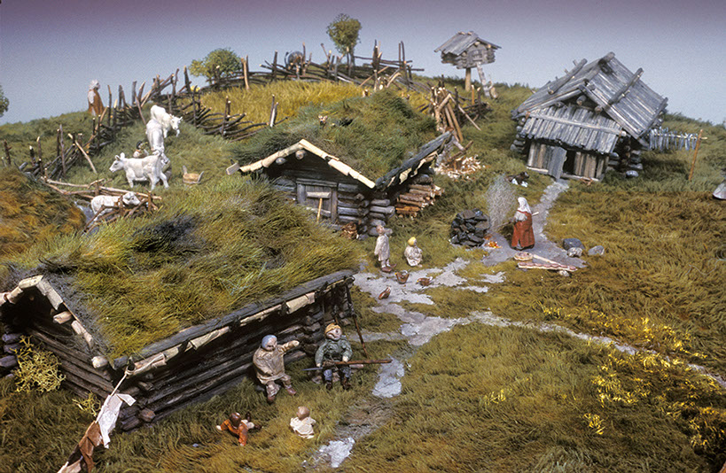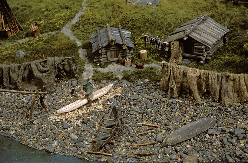 Koirat ja kissat saavat kulkea vapaasti, mutta hevonen ja muutamat ajoporot on pidettävä ohrahalmeista erillään, omilla laitumillaan. Pienet viljelyalat on aidattu arvokkaan sadon suojaamiseksi. Avoin pihatanner ja rantatörmä kuhisee toimintaa, joka suuntautuu vuolaana virtaavaan jokeen. Siinä on veneranta ja limilaitaiset haapiot, keveät kulkuveneet. Niiden partailla ovat loiskineet Perämeren ja Vienanmeren aallot.