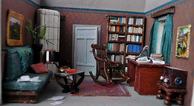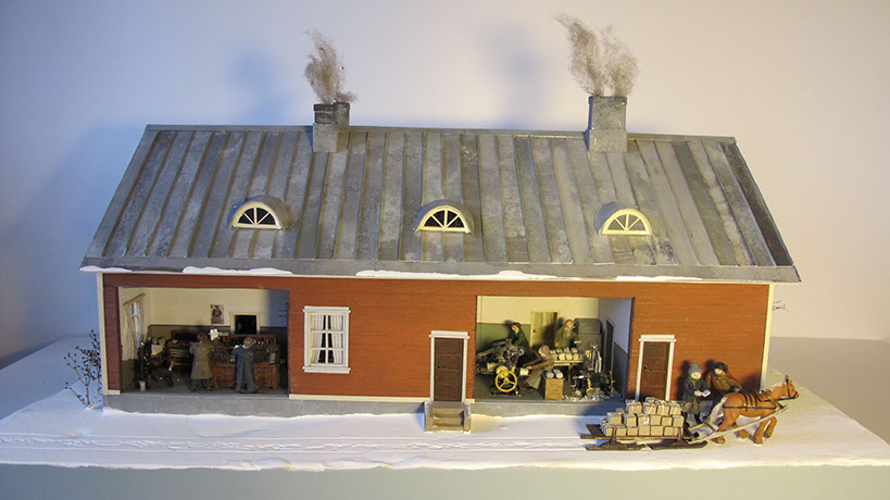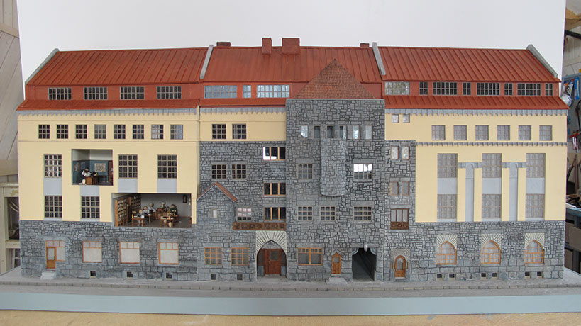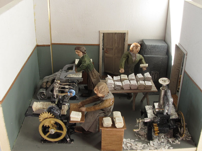 Kuinka kirja syntyy? Siihen vastaa viiden pienoismallin sarja, johon kuuluu kirjailijan talo, kuvittajan kaupunkiasunto, kääntäjän saaristolaismökki, suuri kustannustalo (Otava) ja kirjan lopullinen toteuttaja painotalo, tässä mallina pieni Tyrvään kirjapaino. Mallit ajoittuvat 1920-luvulle ja kokonaisuus on rakennettu Suomen kirjainstituutin Pukstaavi-museoon Sastamalassa.
