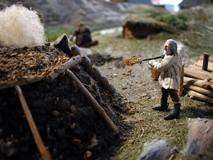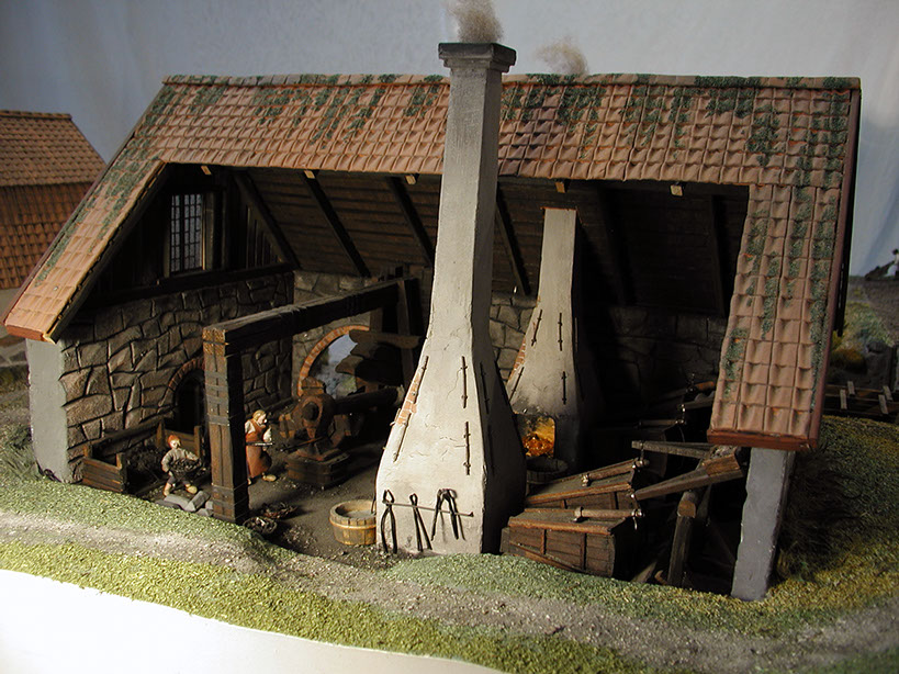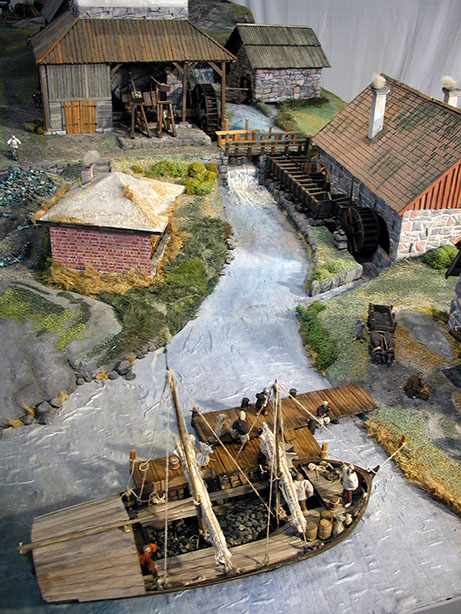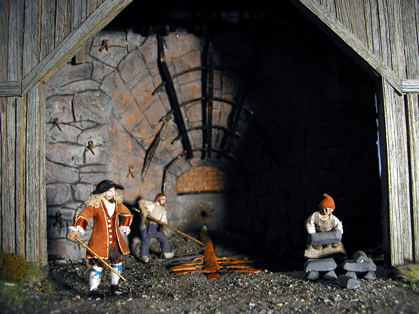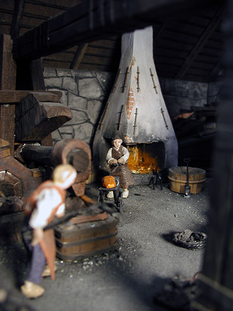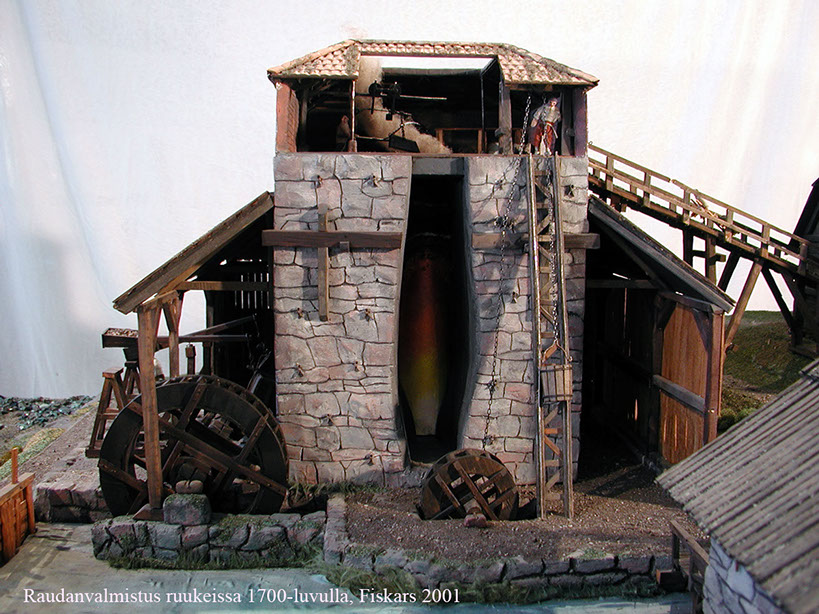 Miten malmista syntyy rautaa? Pienoismalli kertoo vaihe vaiheelta kuinka se tapahtui lähtien malmin louhinnasta, edeten pasutuksen ja murskauksen kautta masuunin hehkuun, sieltä mellotukseen kankivasarapajassa ja edelleen kuljetettavaksi Tukholman rautamarkkinoille. Rakennuksilla on esikuvansa Fiskarsissa tai lähiruukeissa ja mallin koko on yli 6 m2